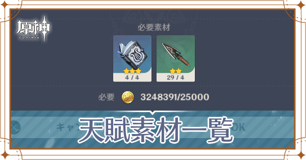原神 キャラごとに必要な天賦強化素材の早見表 無理のない課金は無課金攻略